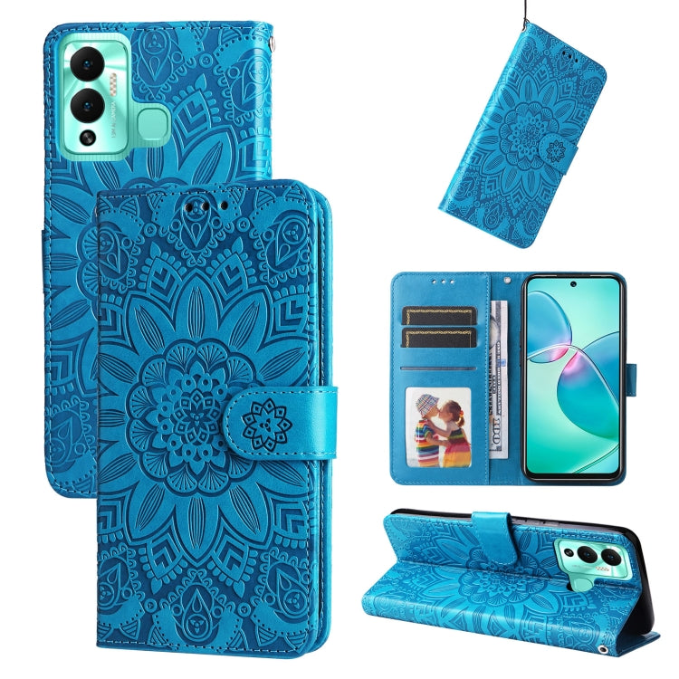 Estuche para Infinix Hot 12 Play de Cuero con Estampado de Girasol en Relieve (Azul)
