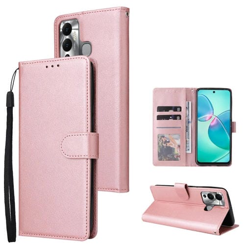 Funda para Infinix Hot 12 Play de Cuero Multifuncional con 3 Ranuras para Tarjetas (Oro Rosa)