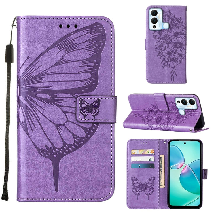 Funda de Cuero para Infinix Hot 12 Play/Hot 12 Play Nfc X6816C con Tapa Mariposa en Relieve (Púrpura)