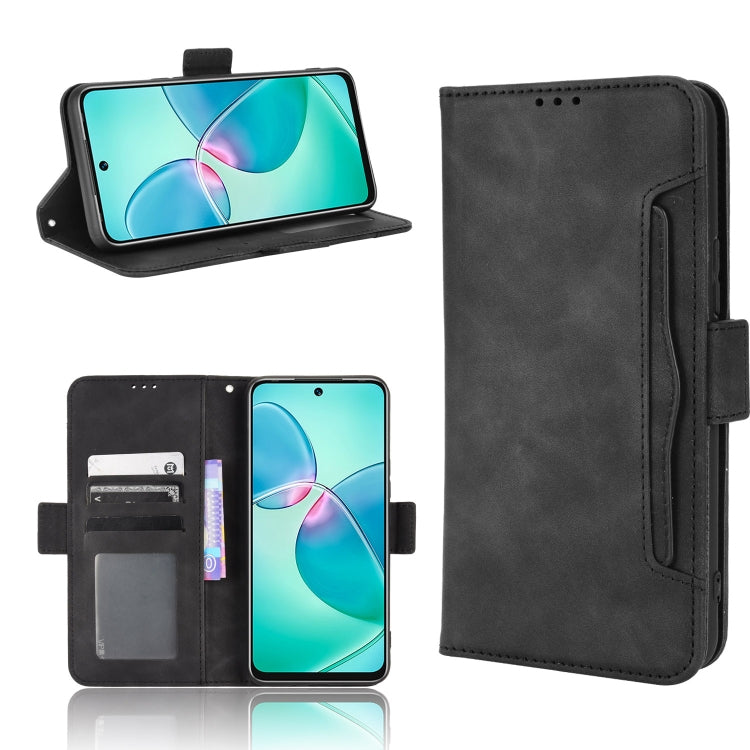 Funda de Cuero para Infinix Hot 12 Play con Textura Becerro y Ranuras para Tarjetas (Negro)