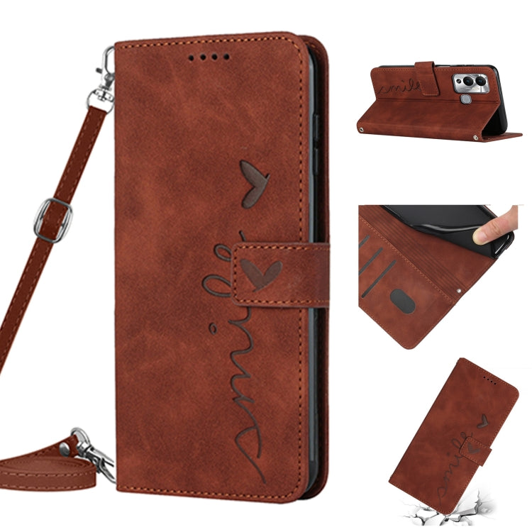 Funda de Cuero para Infinix Hot 12 Play con Cordón y Diseño Heart Pattern (Marrón)