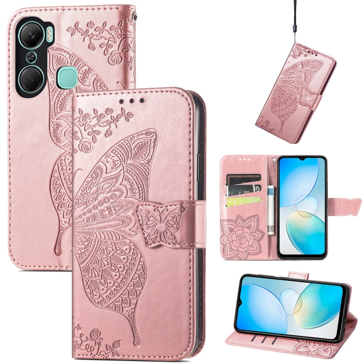 Funda de Cuero En Relieve Butterfly Love Flower para Infinix Hot 12 Pro (Oro Rosa)