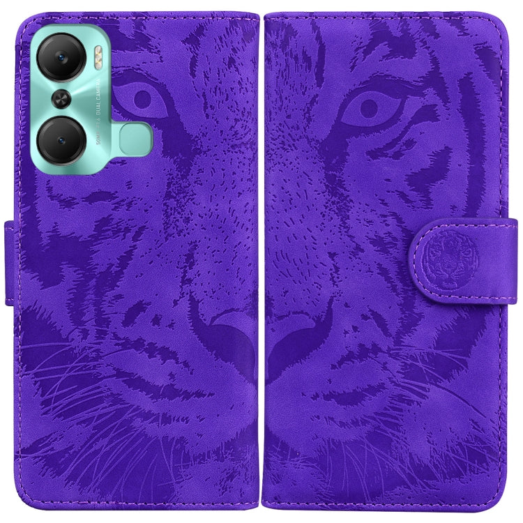 Funda de Cuero para Infinix Hot 12 Pro con Tapa Horizontal y Patrón Tiger (Púrpura)