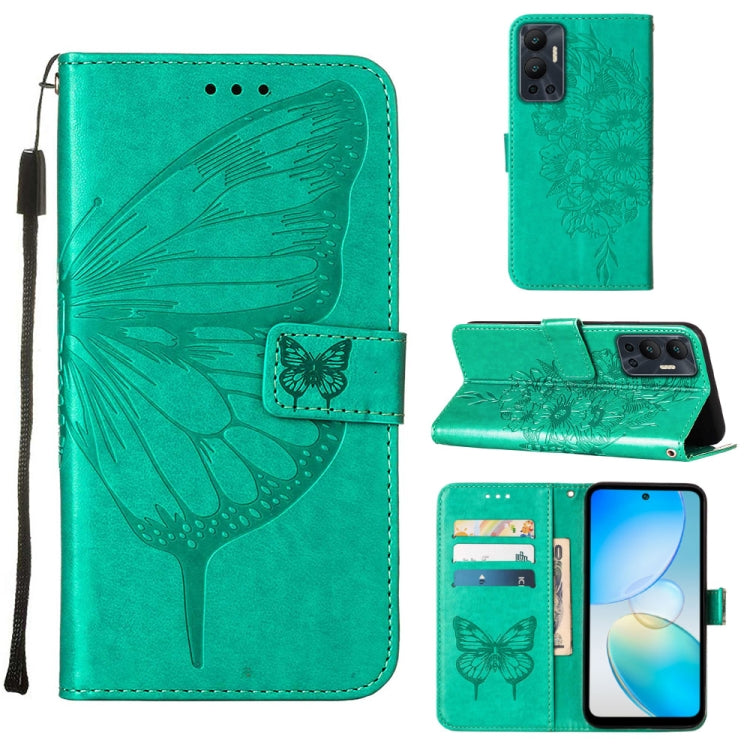 Funda de Cuero para Infinix Hot 12 X6817 con Tapa de Mariposa en Relieve (Verde)