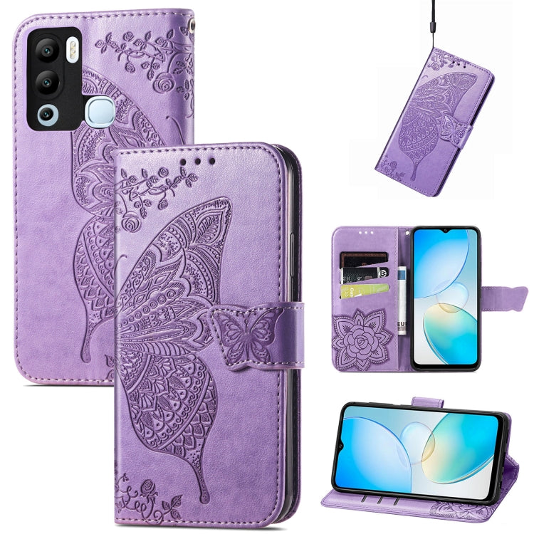 Estuche para teléfono Infinix Hot 12I Butterfly Love Flower de cuero en relieve (Lavanda)