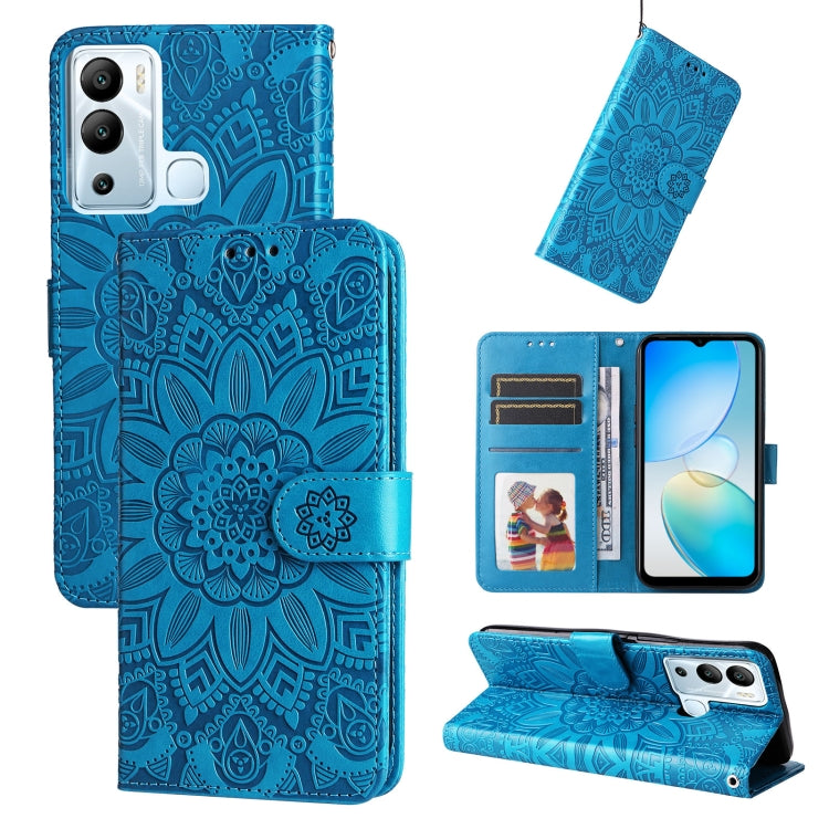 Estuche para Teléfono Infinix Hot 12I Cuero con Estampado de Girasol en Relieve (Azul)