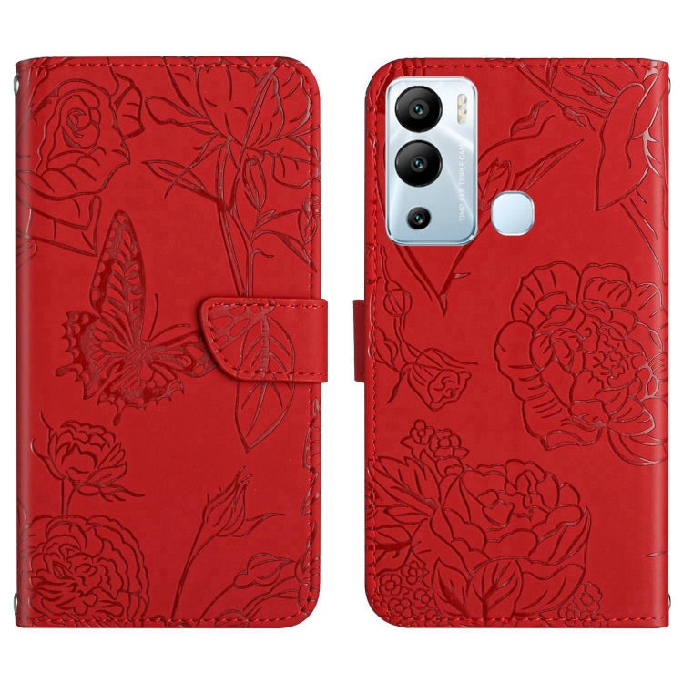 Funda de Cuero para Infinix Hot 12I Ht03 Skin Feel Butterfly con Tapa en Relieve (Rojo)