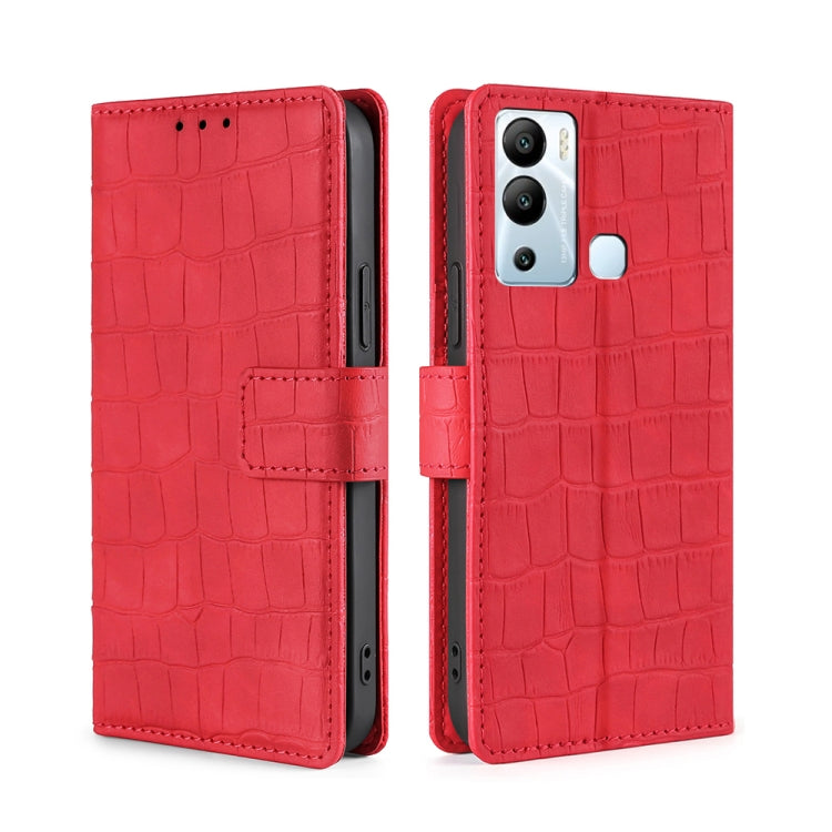 Funda de Cuero para Infinix Hot 12I Skin Feel Cocodrilo con Cierre Magnético (Rojo)