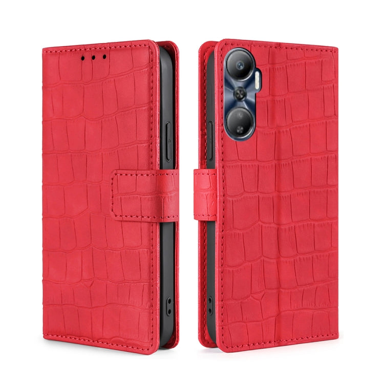 Funda de Cuero Infinix Hot 20 4G Skin Feel Cocodrilo Cierre Magnético (Rojo)