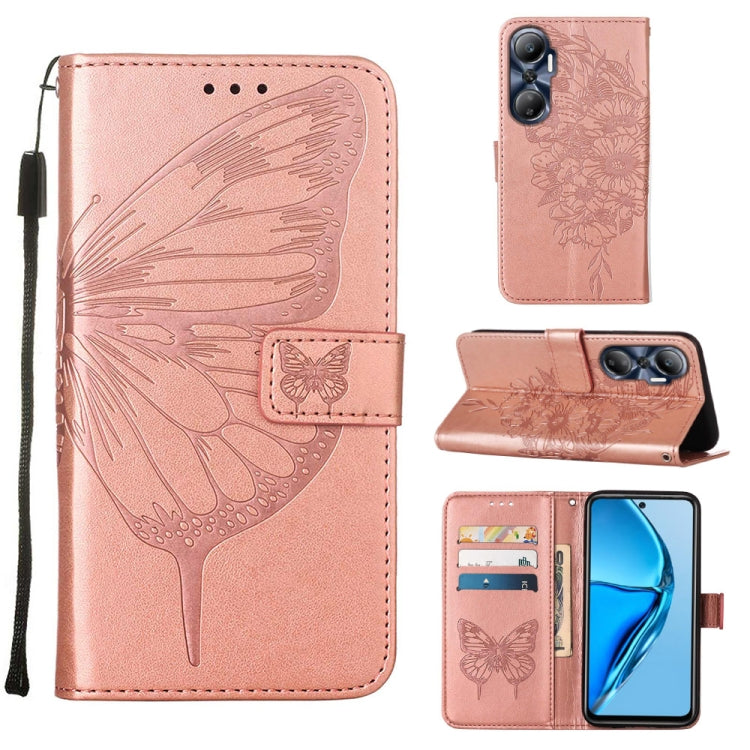 Estuche para Teléfono Infinix Hot 20 4G X6826 Cuero con Tapa Mariposa en Relieve (Oro Rosa)