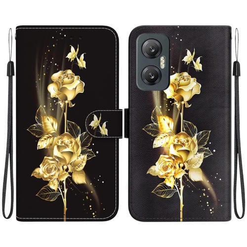 Funda de Cuero para Infinix Hot 20 5G con Dibujo Coloreado Textura Cristal (Mariposa Dorada Rosa)