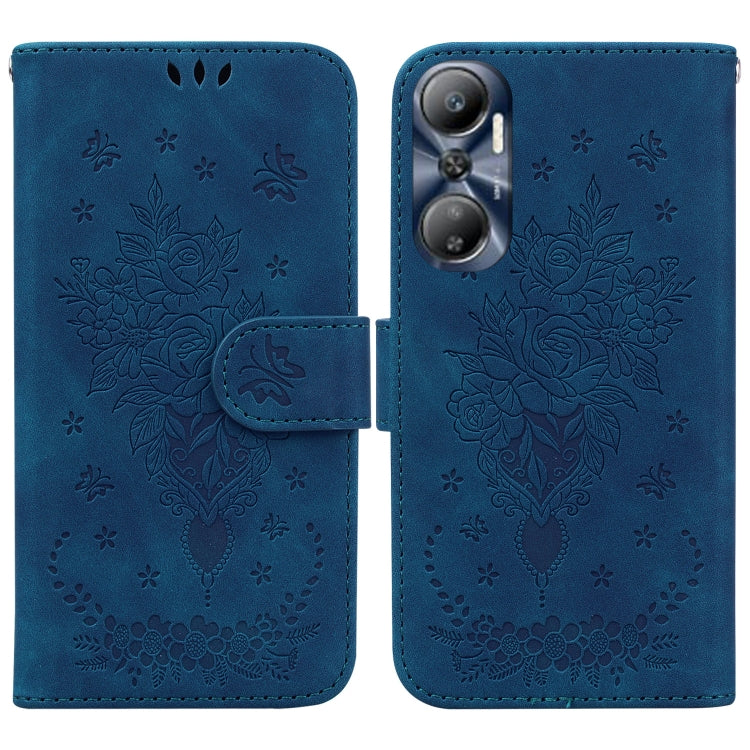 Estuche para Teléfono Infinix Hot 20 Butterfly Rose Cuero en Relieve (Azul)