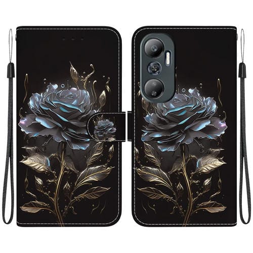 Funda de Cuero para Infinix Hot 20 con Dibujo Coloreado y Textura de Cristal (Rosa Negra)
