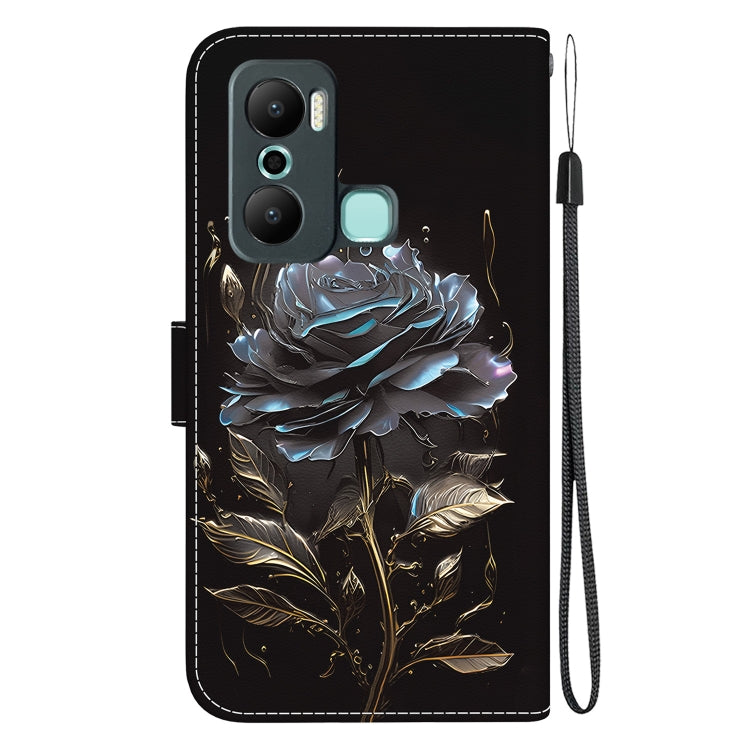 Estuche de Cuero para Infinix Hot 20 Play con Dibujo Coloreado y Textura de Cristal (Rosa Negra)