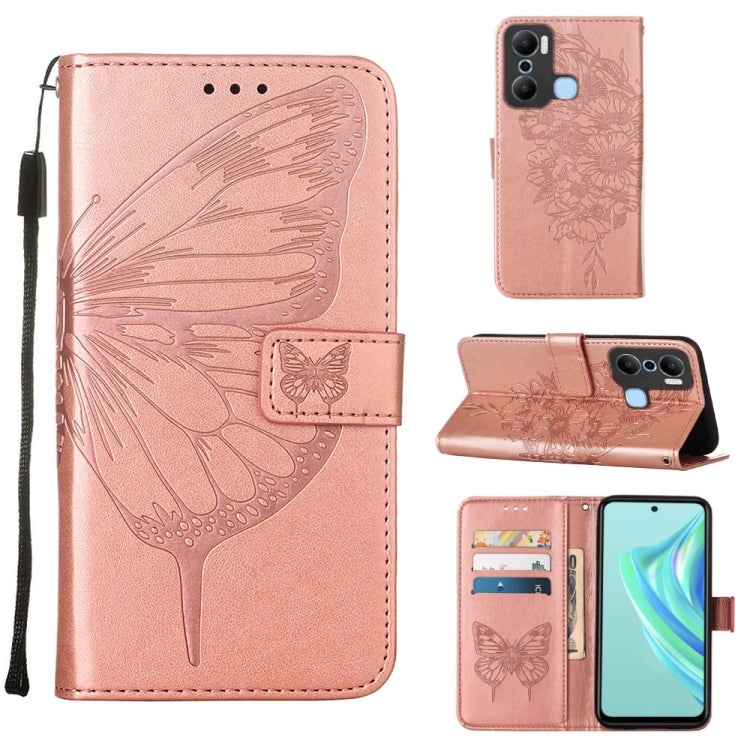 Estuche para Infinix Hot 20 Play de Cuero con Tapa de Mariposa en Relieve (Oro Rosa)
