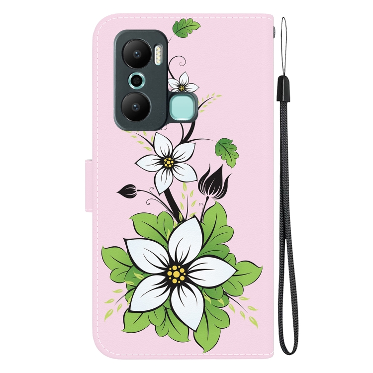 Funda de Cuero para Infinix Hot 20 Play con Dibujo Coloreado y Textura de Cristal (Lirio)