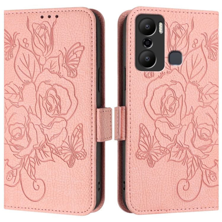 Funda de Cuero Antirrobo RFID para Infinix Hot 20 Play con Relieve (Rosa)
