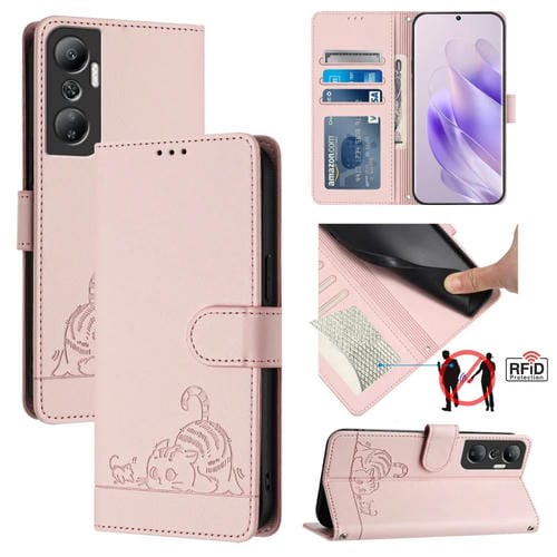 Estuche para Teléfono Infinix Hot 20 X6826 Cuero Rfid con Patrón en Relieve y Cordón (Rosa)