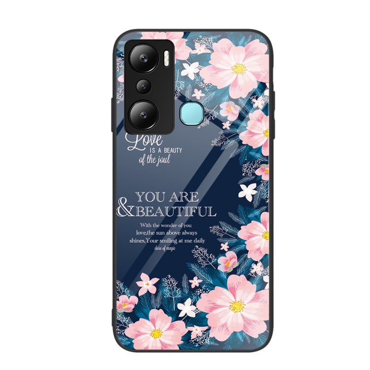 Caja de Teléfono de Vidrio Pintado Colorido para Infinix Hot 20I (Flor)
