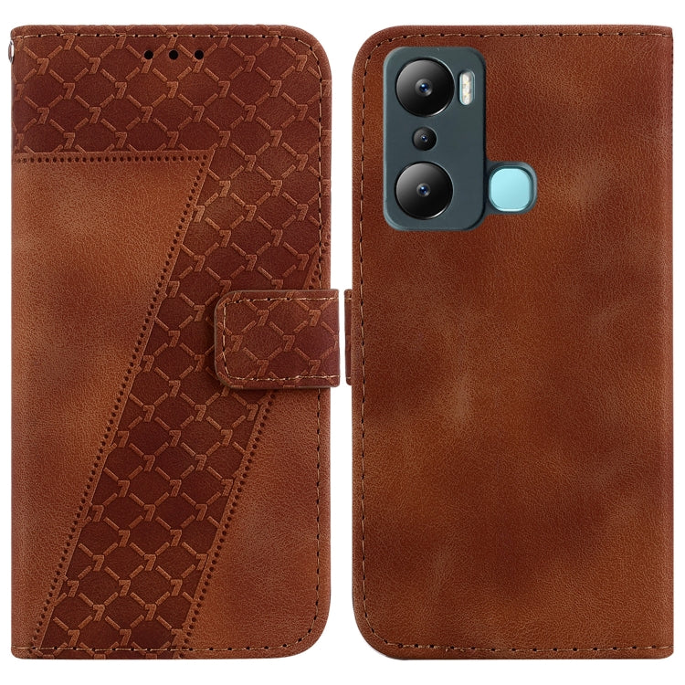 Funda de Cuero En Relieve en Forma de 7 para Infinix Hot 20I (Marrón)