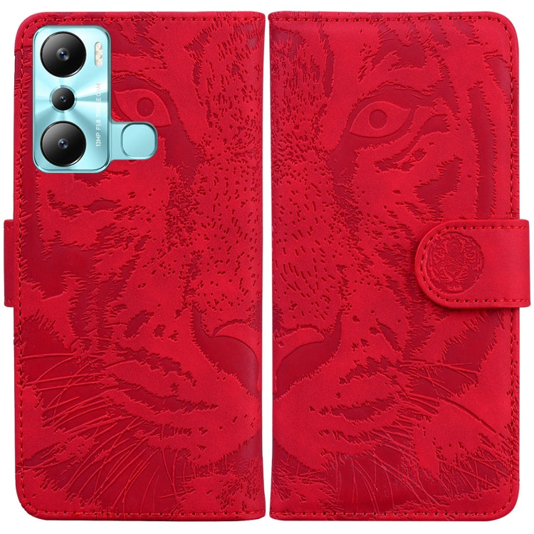 Funda de Cuero para Teléfono Infinix Hot 20I Tiger con Relieve Patrón (Rojo)