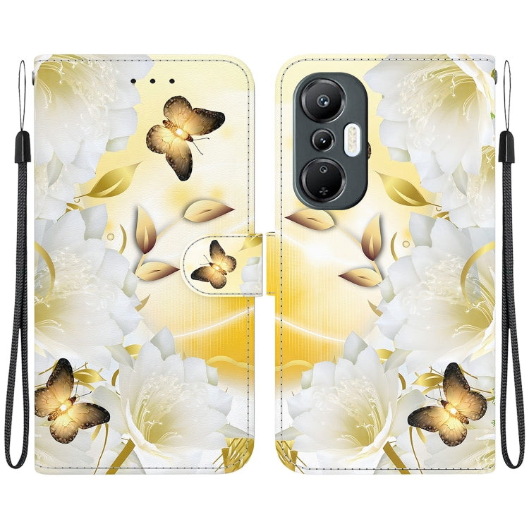Estuche de Cuero para Infinix Hot 20S con Dibujo Epiphyllum de Mariposa Dorada y Textura de Cristal