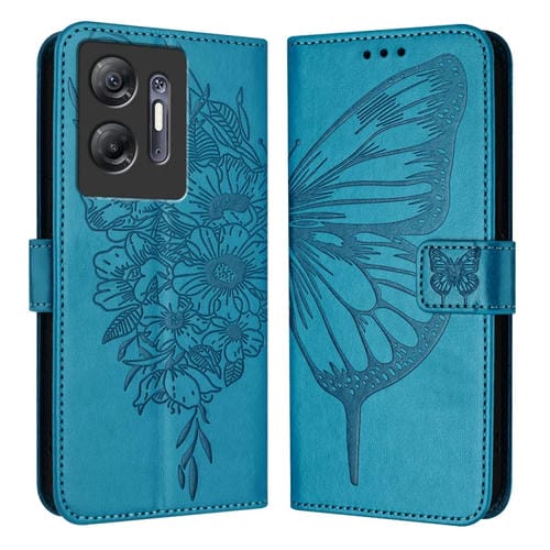 Funda de Cuero para Infinix Hot 30 5G con Mariposa en Relieve (Azul)