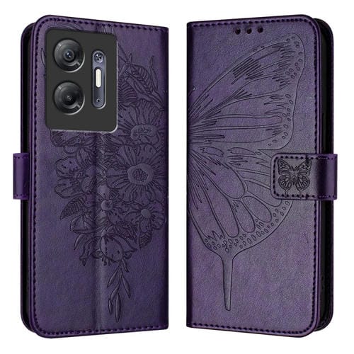 Funda de Cuero para Infinix Hot 30 5G con Mariposa en Relieve (Púrpura Oscuro)