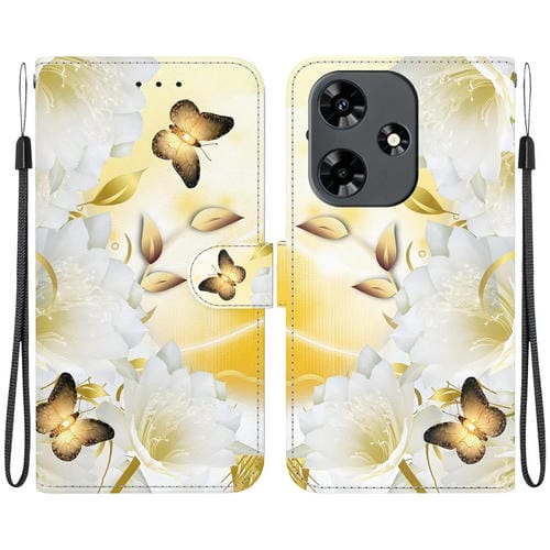 Funda de Cuero para Infinix Hot 30 con Dibujo Coloreado y Textura de Cristal (Epiphyllum de Mariposa Dorada)
