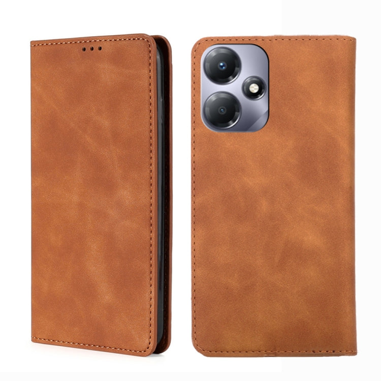 Funda de Cuero Magnética para Infinix Hot 30 Play 4G Skin Feel (Marrón Claro)
