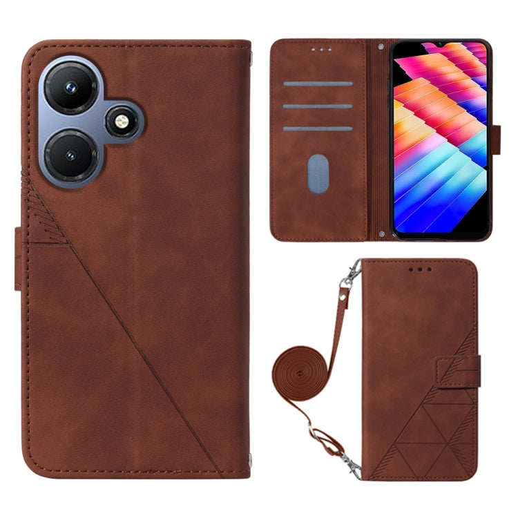 Funda de Cuero Crossbody 3D para Infinix Hot 30I X669 con Tapa En Relieve (Marrón)