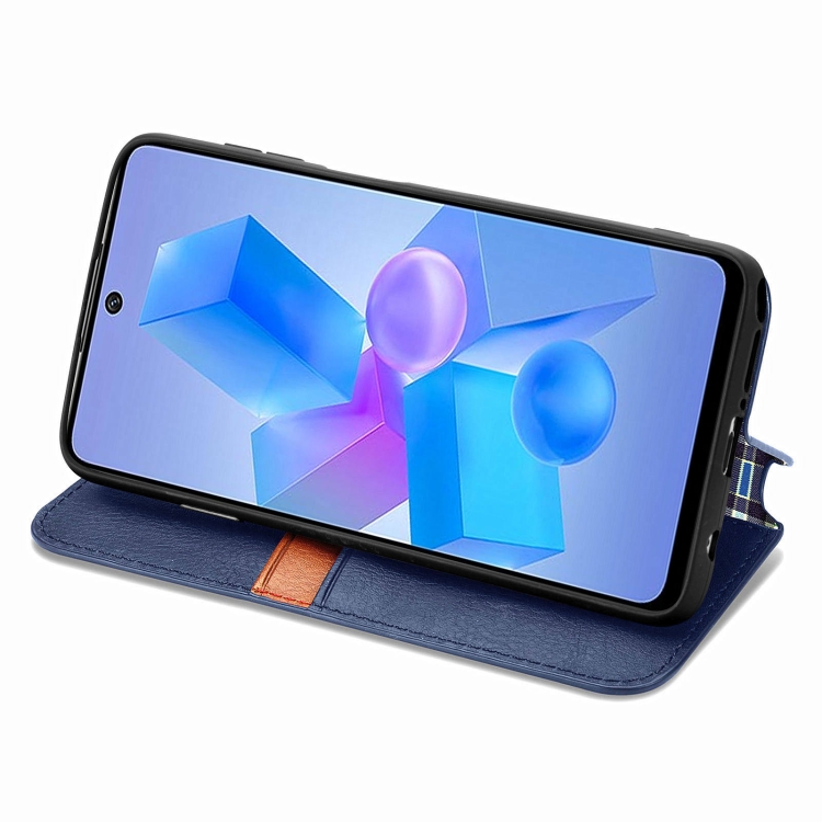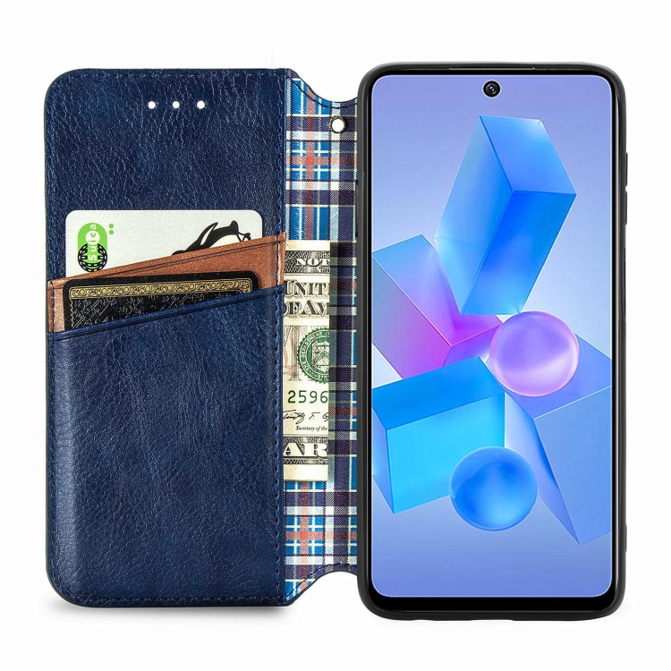 Funda de Cuero Magnético Prensado para Infinix Hot 40 4G Cubic Grid (Azul)