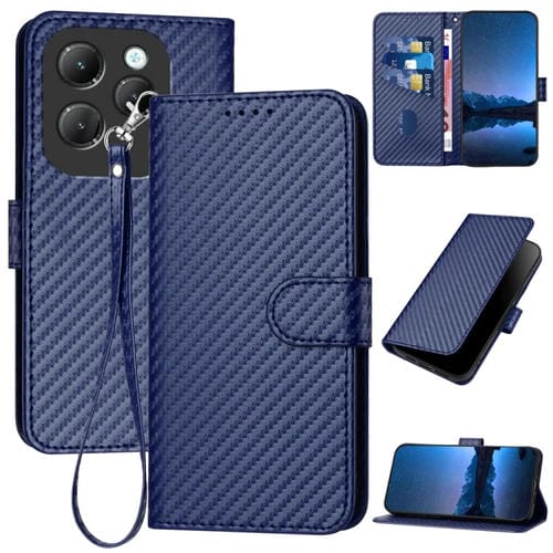 Funda de Cuero para Infinix Hot 40 / Hot 40 Pro 4G Yx0070 con Hebilla de Fibra de Carbono y Cordón (Azul Real)
