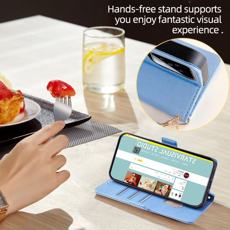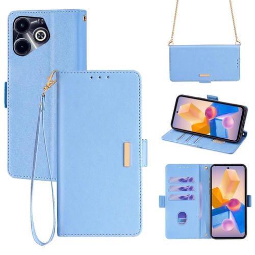 Funda de Cuero para Teléfono Infinix Hot 40I 4G con Cadena Cruzada (Azul)