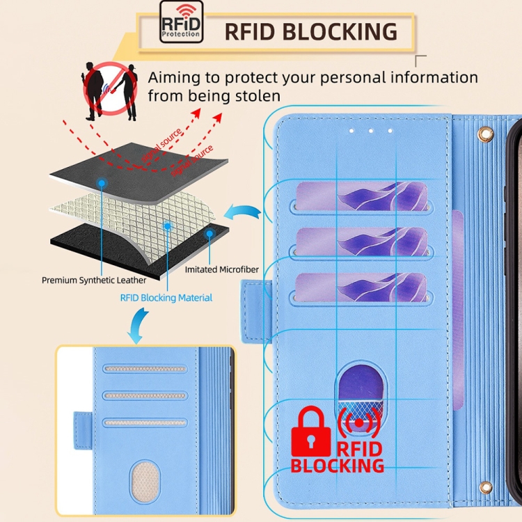 3. Función de bloqueo RFID: Diseñado con tecnología de bloqueo RFID que puede bloquear señales RFID y proteger información personal de escáneres no autorizados.