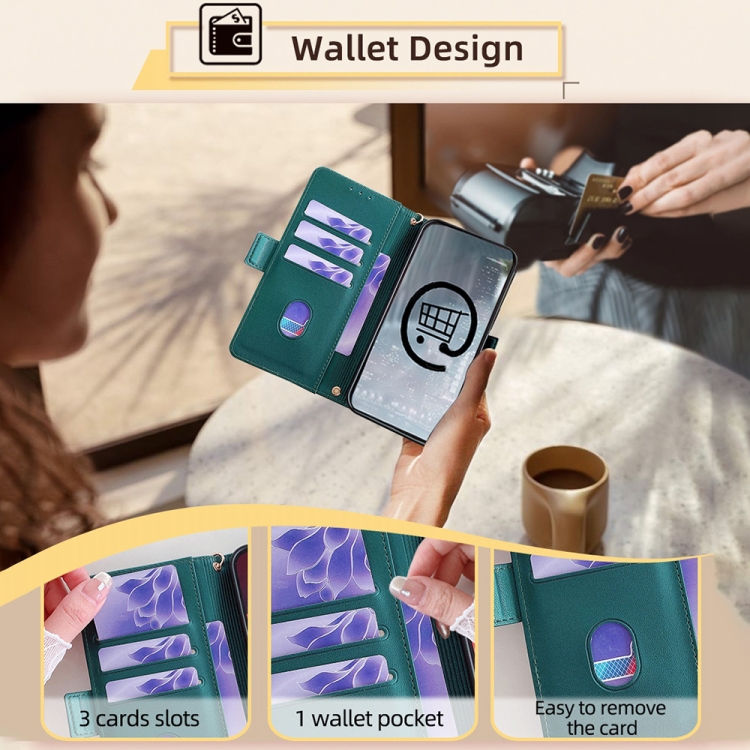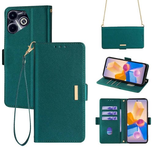Funda de Cuero para Infinix Hot 40I 4G con Cadena Cruzada (Verde)