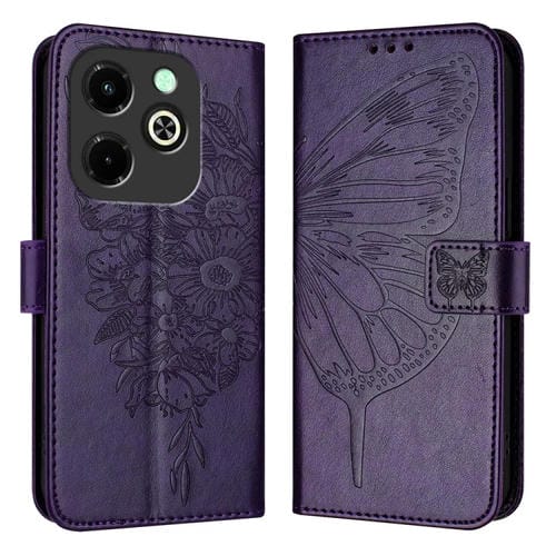Funda de Cuero para Infinix Hot 40I con Mariposa en Relieve (Púrpura Oscuro)