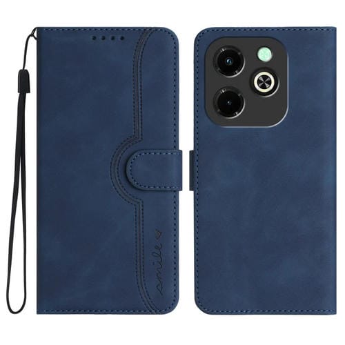 Funda de Cuero para Infinix Hot 40I con Sensación de Piel y Patrón de Corazón (Azul Real)