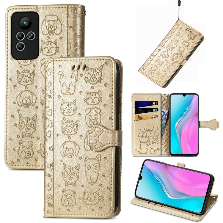 Estuche de Cuero En Relieve para Infinix Note 11 Cute Cat And Dog (Dorado)