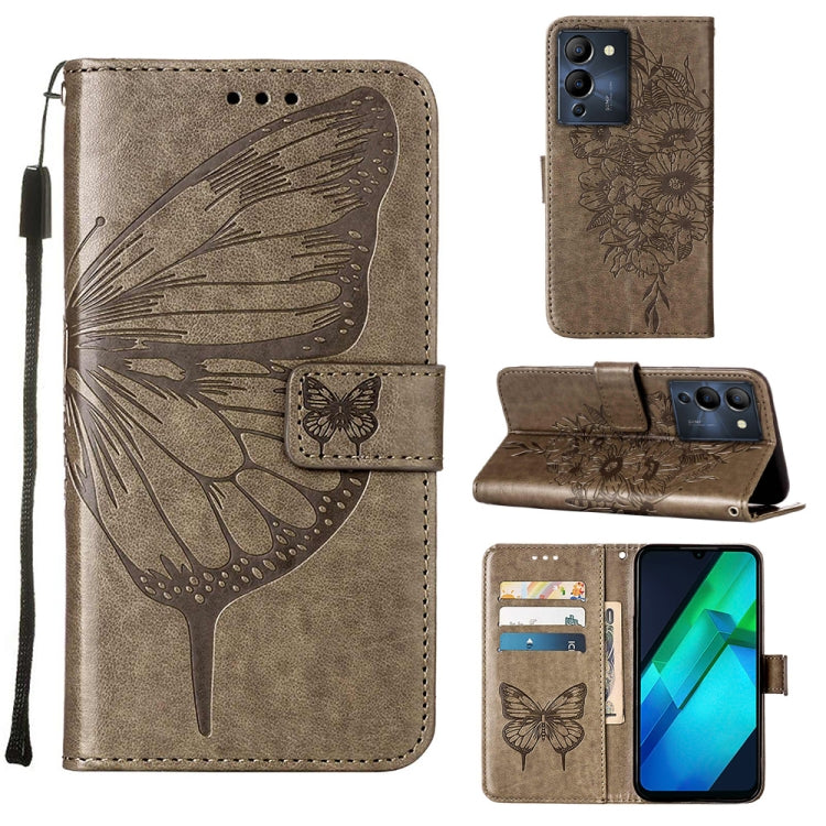 Funda de Cuero para Infinix Note 12 G96 con Tapa de Mariposa en Relieve (Gris)