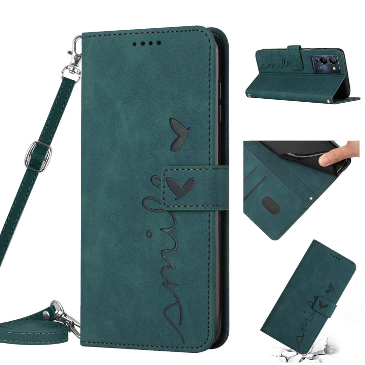 Funda de Cuero para Infinix Note 12 G96 con Cordón y Diseño Heart Pattern (Verde)