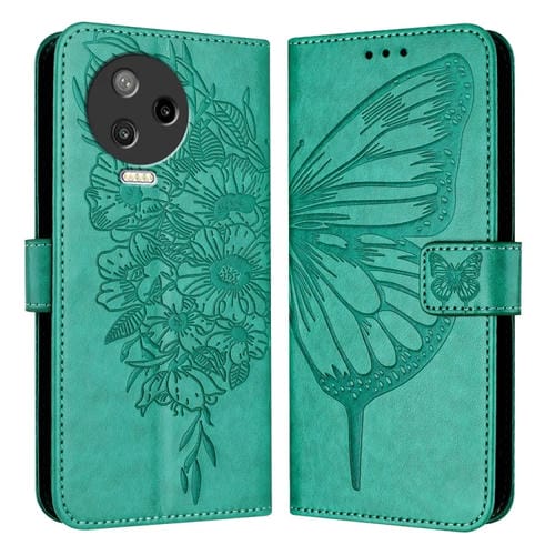 Funda para Infinix Note 12 Pro 4G y Note 12 2023 de Cuero con Mariposa en Relieve (Verde)