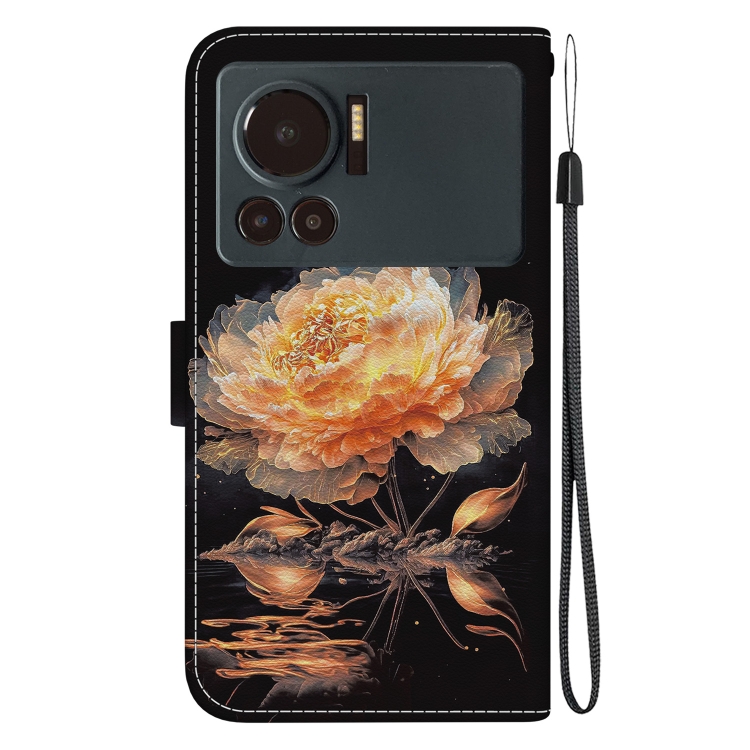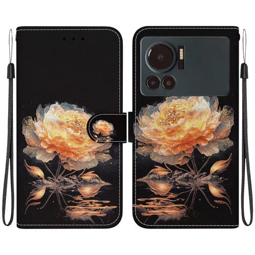 Funda de Cuero para Infinix Note 12 Vip con Dibujo Coloreado y Textura Crystal (Peonía Dorada)