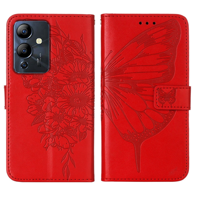 Estuche de Cuero para Infinix Note 12I 2023 y G85 con Mariposa en Relieve (Rojo)