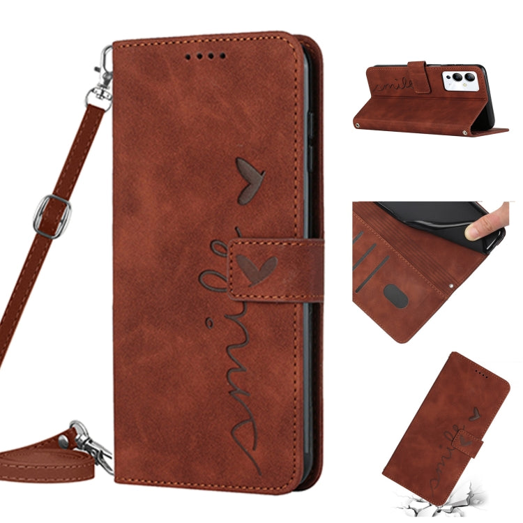 Funda de Cuero para Infinix Note 12I con Cordón y Diseño Heart Pattern (Marrón)
