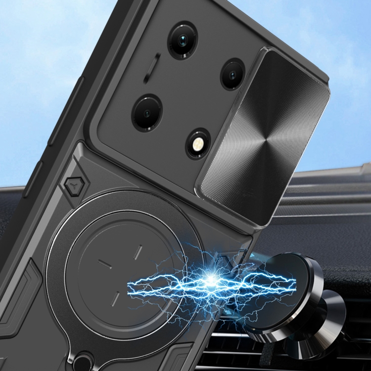 Funda para Infinix Note 30 4G y 5G Cd Texture Sliding Camshield con Soporte Magnético (Negro)