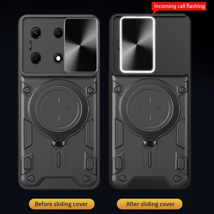 Funda para Infinix Note 30 4G y 5G Cd Texture Sliding Camshield con Soporte Magnético (Plata)