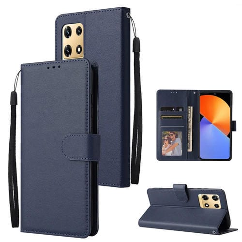 Funda de Cuero para Infinix Note 30 Pro con 3 Ranuras para Tarjetas Multifuncional (Azul Oscuro)
