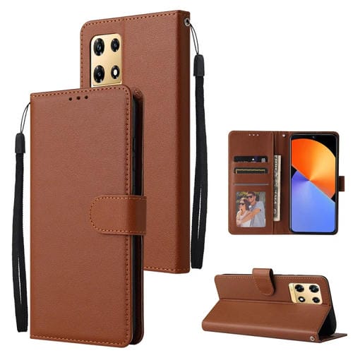 Funda de Cuero Multifuncional para Infinix Note 30 Pro con 3 Ranuras para Tarjetas (Marrón)