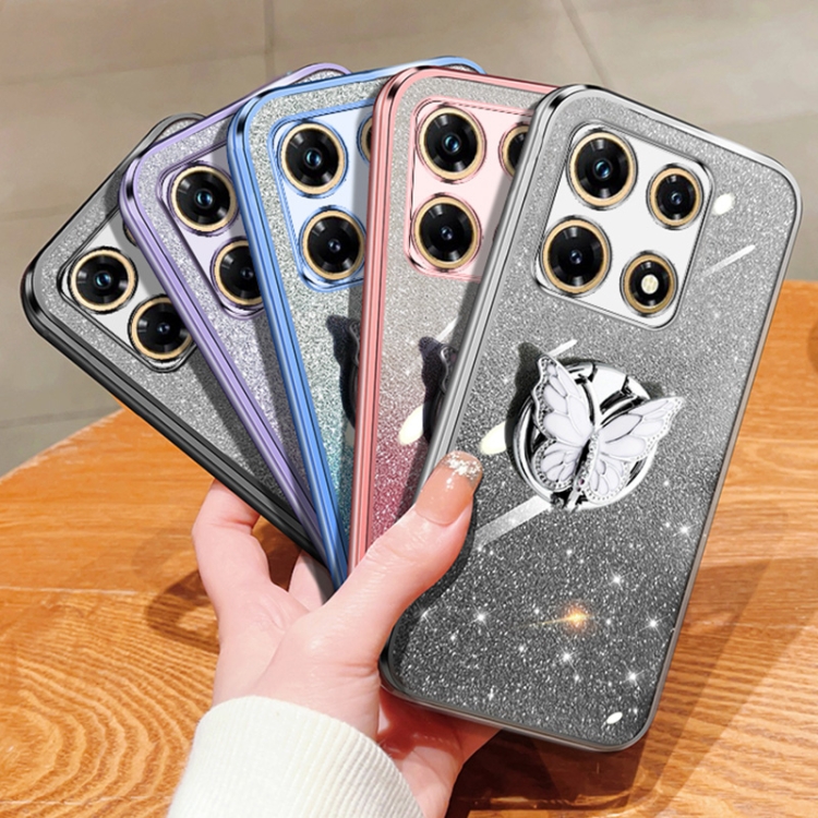 Funda TPU para Infinix Note 30 Pro con Soporte de Mariposa y Brillo Degradado (Púrpura)